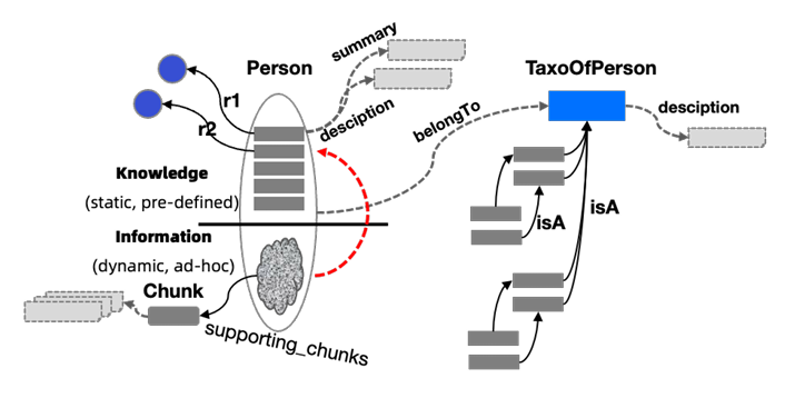 • 动态的信息区:对于信息检索场景需要灵活的动态属性(比如从文本中提取 “高血压患者应少吃盐”,不用提前定义 “饮食建议” 属性),确保知识完整。