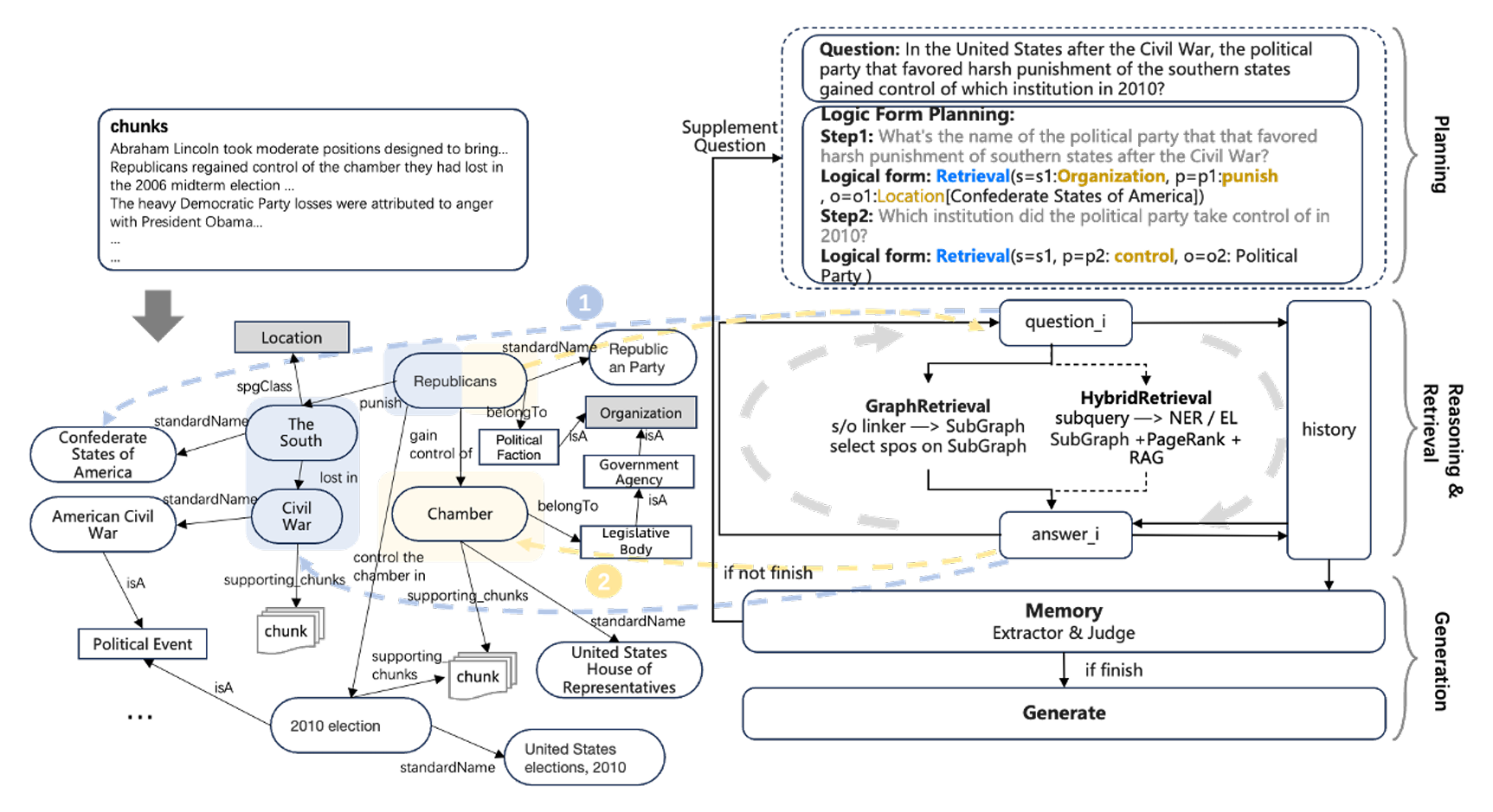 • 思考: 论文虽然效果很好,但其 Pipeline 非常长:规划(Planning) -> 图检索 -> 文本检索 -> 推理 -> 反思 。这是一种典型的 慢思考 模式。