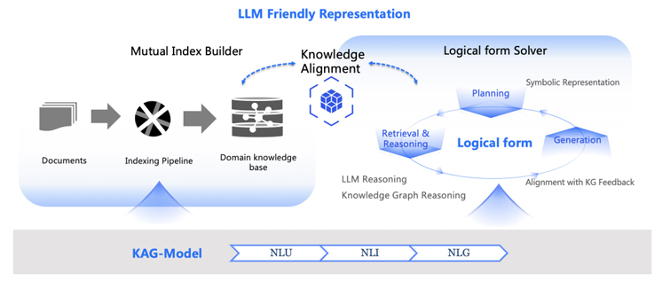 通过 NLU(自然语言理解)、NLI(自然语言推理)、NLG(自然语言生成)给 KAG-Builder 与 KAG-Solver 提供LLM的底层支撑,让 KAG 更会 “理解问题””推理知识””写专业答案”。